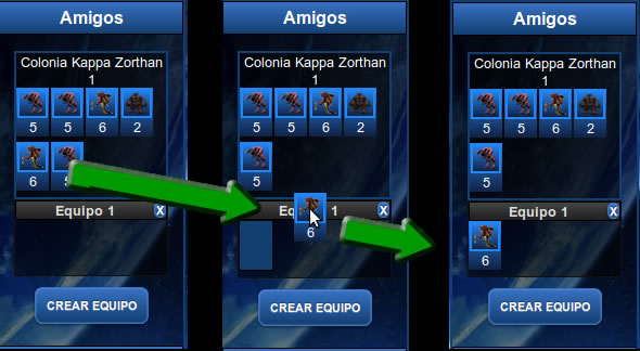 2) Después hay que seleccionar una unidad de la colonia y moverla con drag&drop hacia el nuevo equipo recién creado