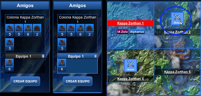 3) Listo, rellenar el equipo como deseen, después hacerle seleccionen el equipo y luego en el mapa del planeta seleccionar donde se quiere mover la unidad.